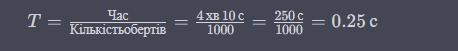 БУДЬЛАСКА СРОЧНО У МЕНЕ 5 ХВ Деяке тіло за 4хв 10с здійснило 1000 повних обертів по колу. Визначте період і частоту обертання цього тіла