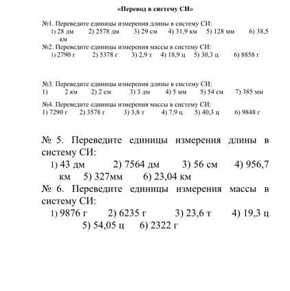 «Перевод в систему СИ>>