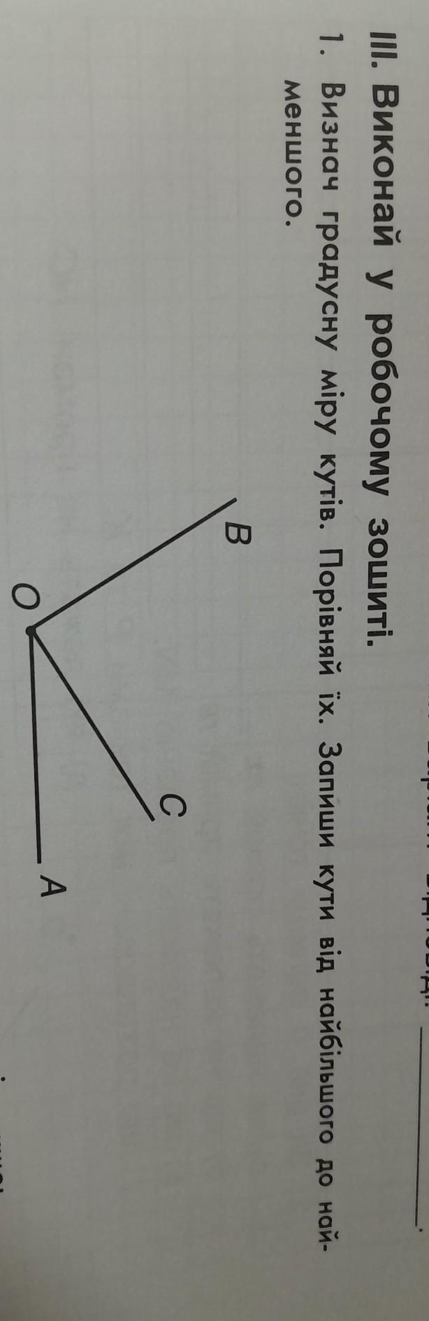1. Визнач градусну міру кутів. Порівняй їх. Запиши кути від найбільшого до най- меншого. В C LA