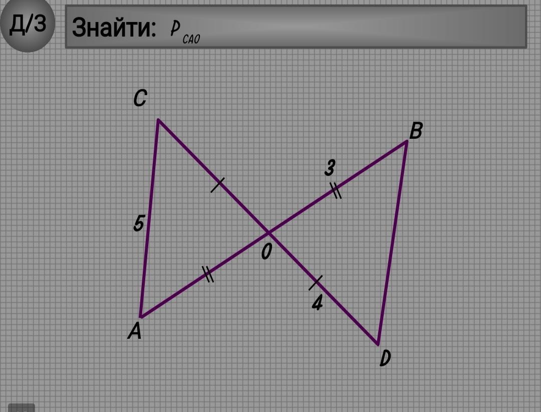∆САО=∆DBO по 2 сторонам и углу между ними, значит соответственные элементы равны, следовательно, АО=ВО=3 ; СО=DO=4