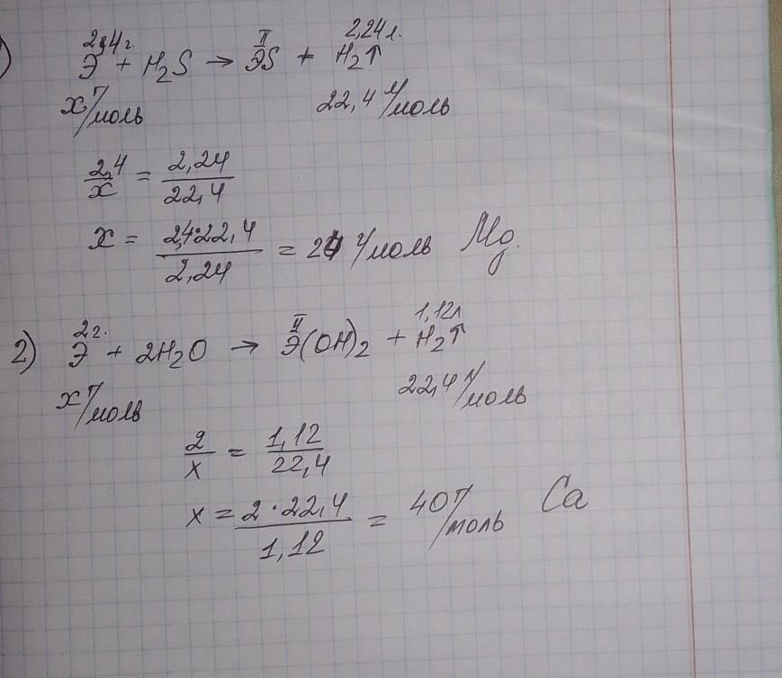 1) При взаємодії 2,4 г двовалентного металу з сульфідною кислотою виділилося 2,24 л водню. = магній