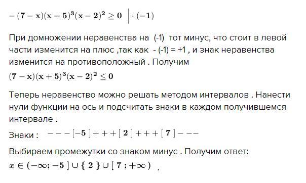 Я не понимаю как меняются знаки в скобках при домнажении или делении на -1 для того чтобы убрать - в начале неравенства. Например -(7-x)×(x+5)^3×(x-2)^2>=0 | ×1