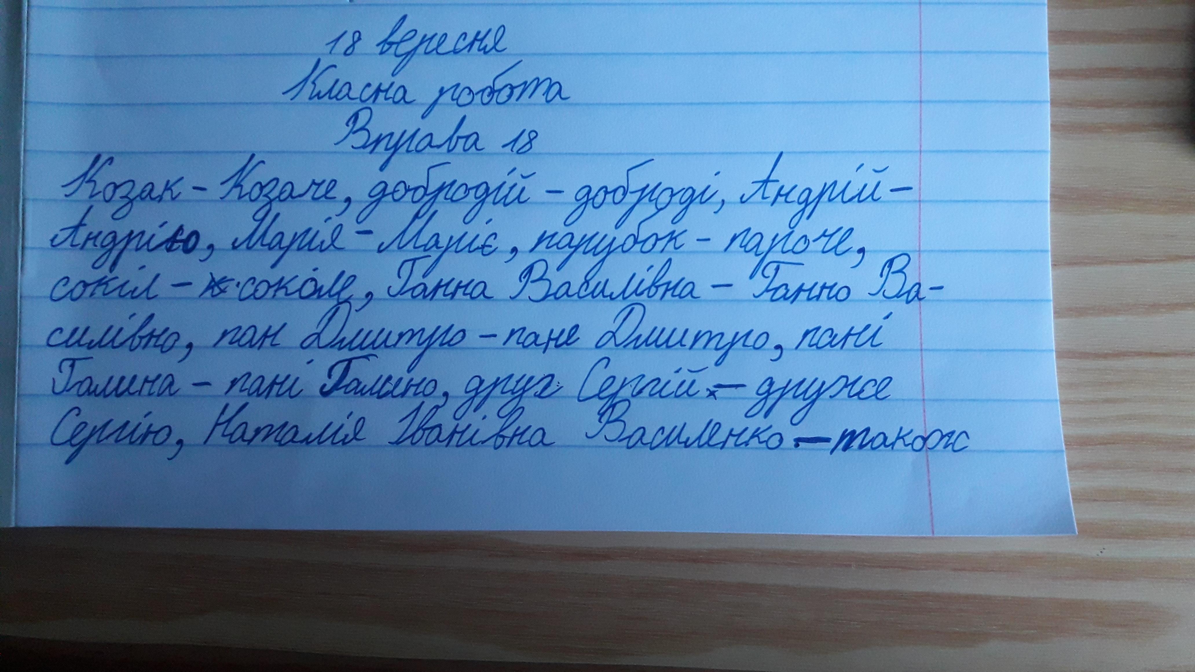 18 1. Запишіть iменники у формі кличного вiдмiнка однини Козак, добродій, Андрiй, Марiя, парубок, сокіл, Ганна Василівна, пан Дмитро, пані Галина, друг Сергій, Наталія Іванівна Василенко. II. Вiд виділених iмен утворіть і запишіть чоловічі й жіночі імена по батькові. Позначте суфікси. СРОЧНО