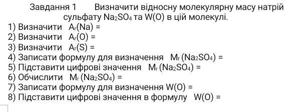 Визначити відносну молекулярну масу натрій сульфату Na2SO4 та W(O) в цій молекулі.