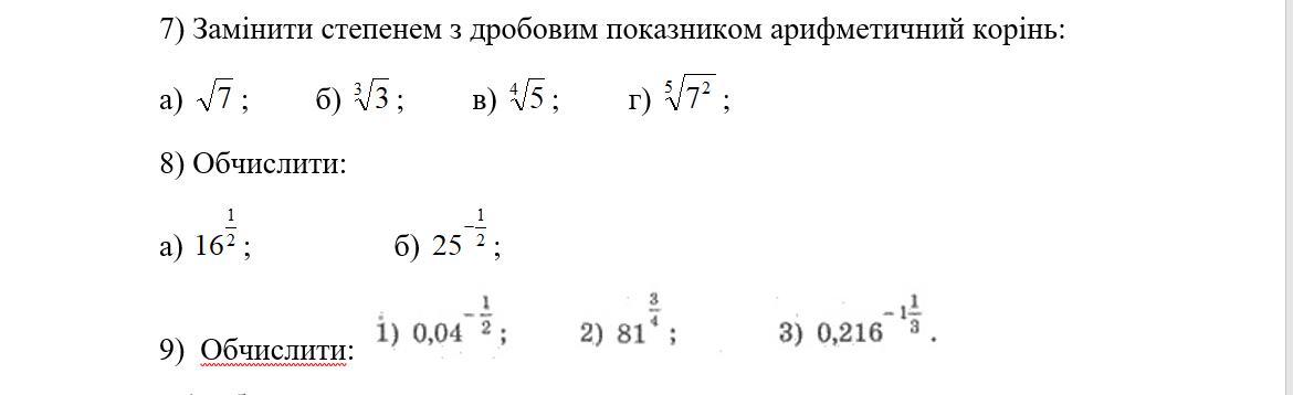 7) Замінити степенем з дробовим показником арифметичний корінь: