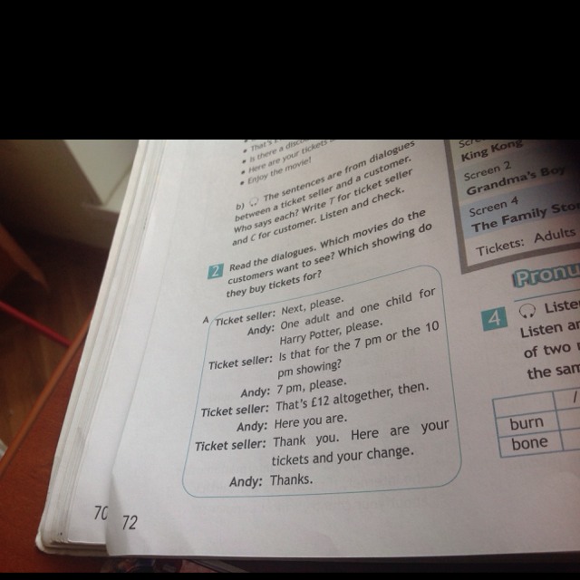ПБ: Спасибо, вот ваши билеты и сдача.