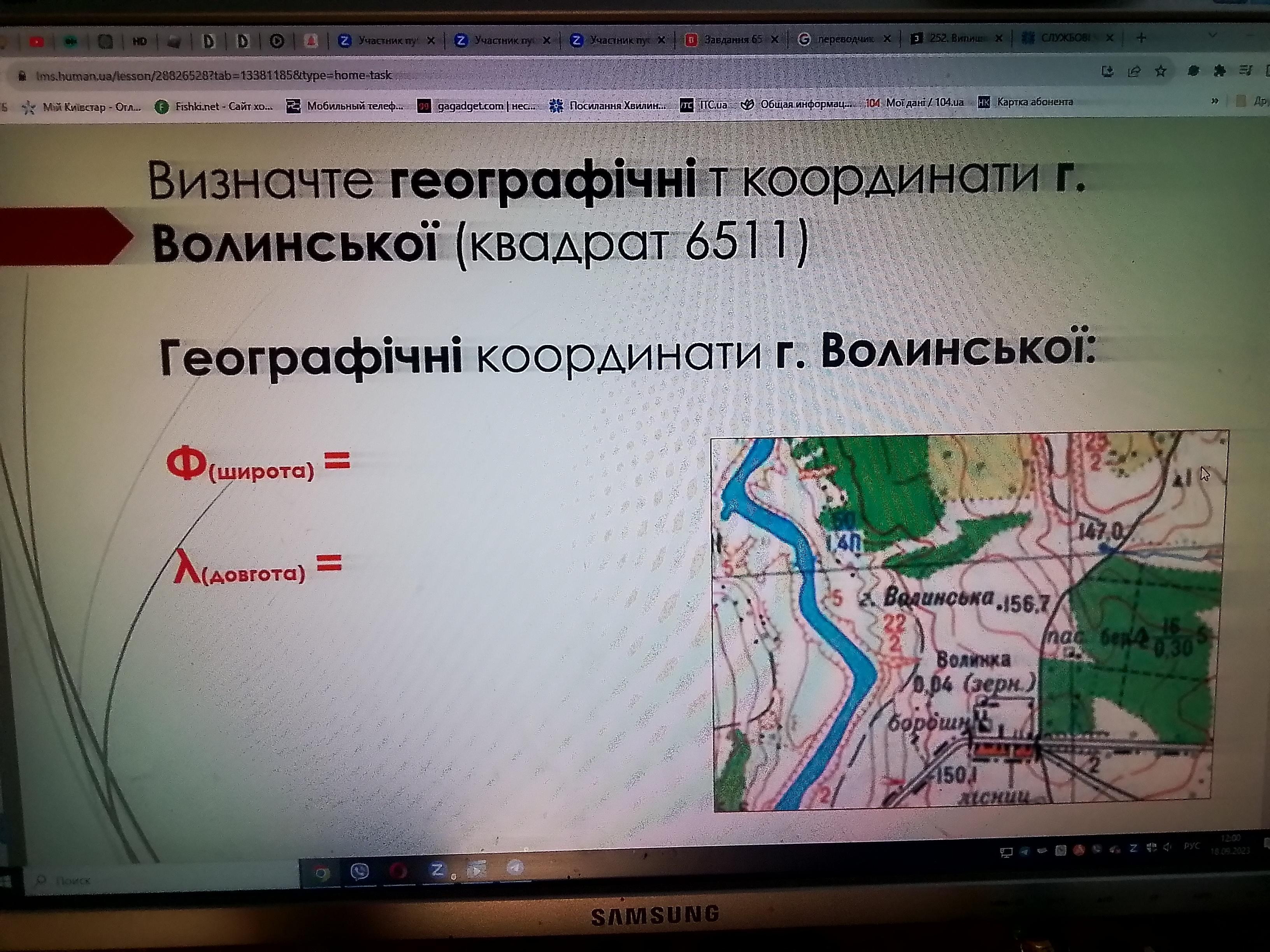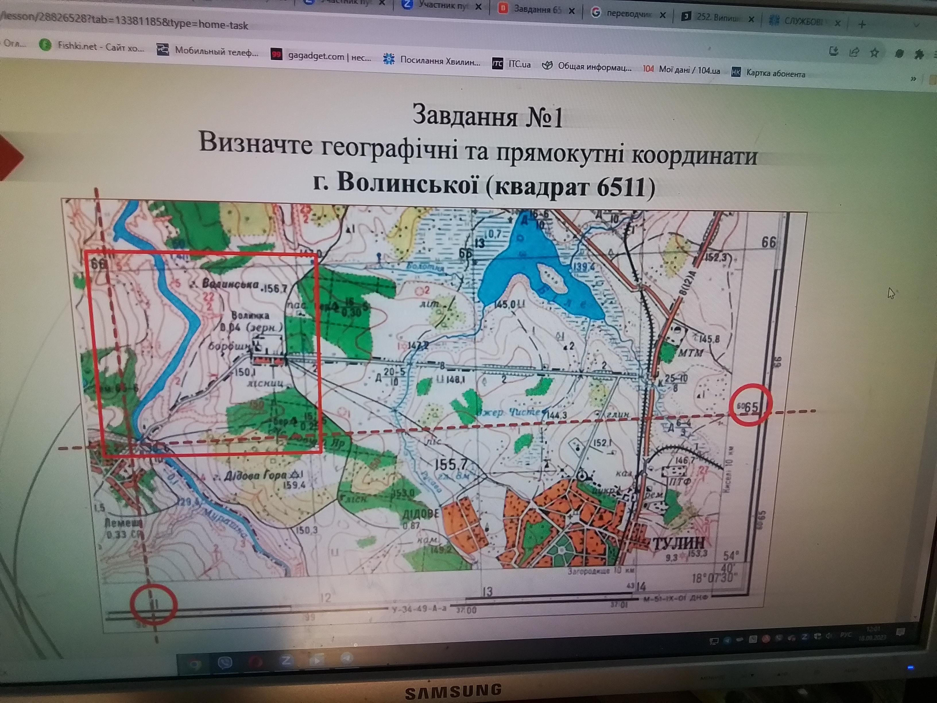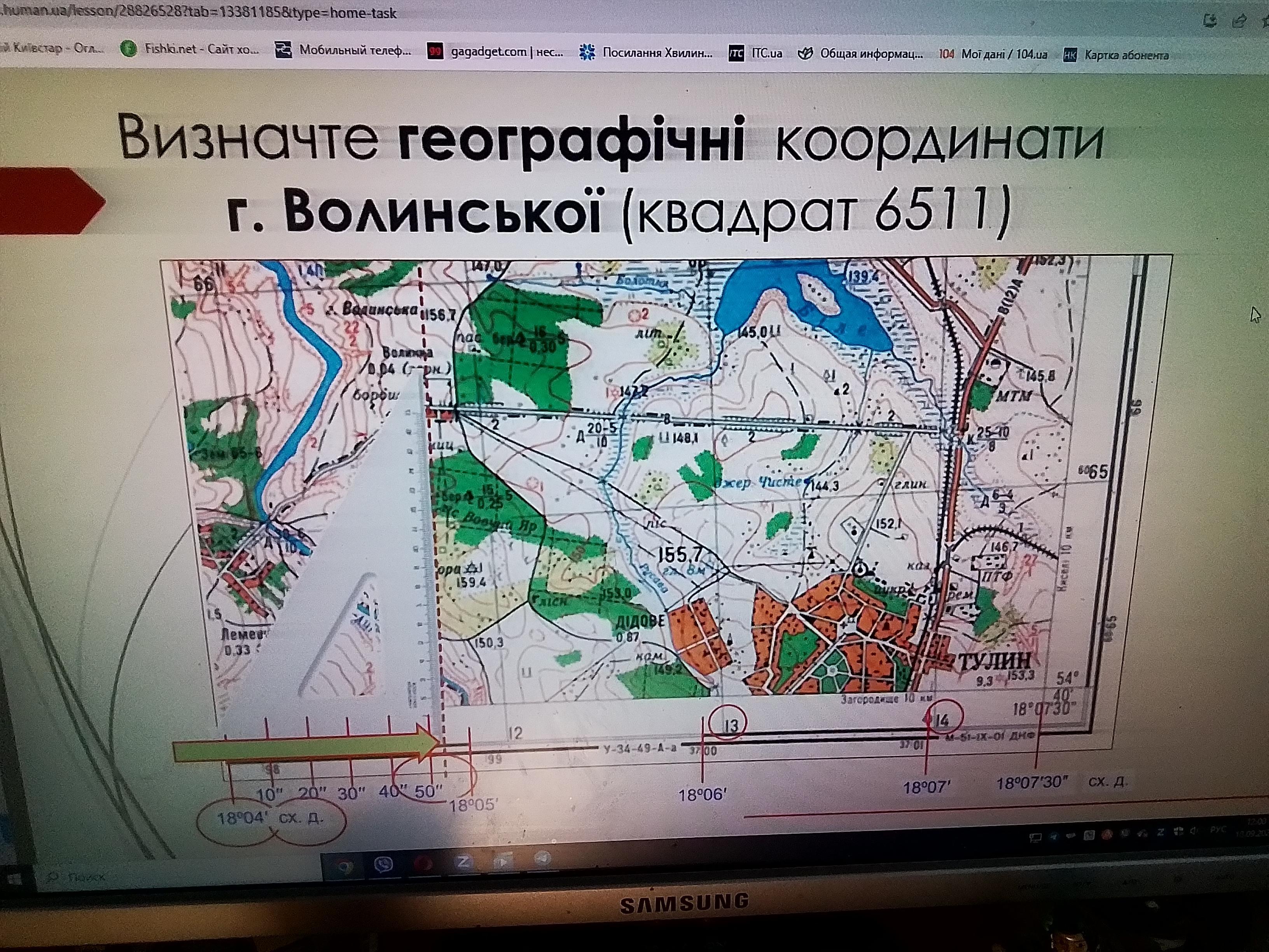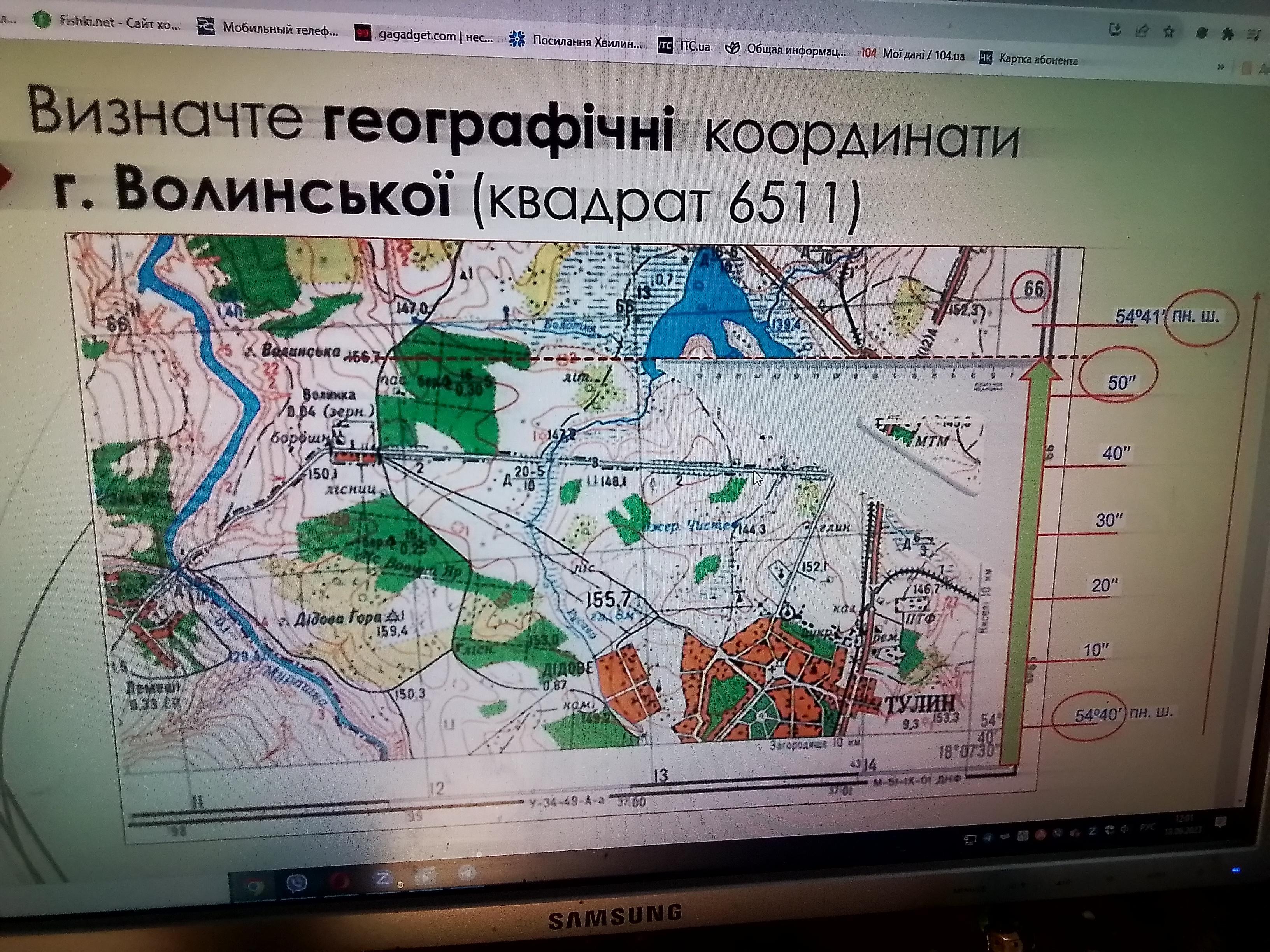 Відповідь:1.Широта 51•08`09.24´´ пн Довгота 24•51´22.68´´сх