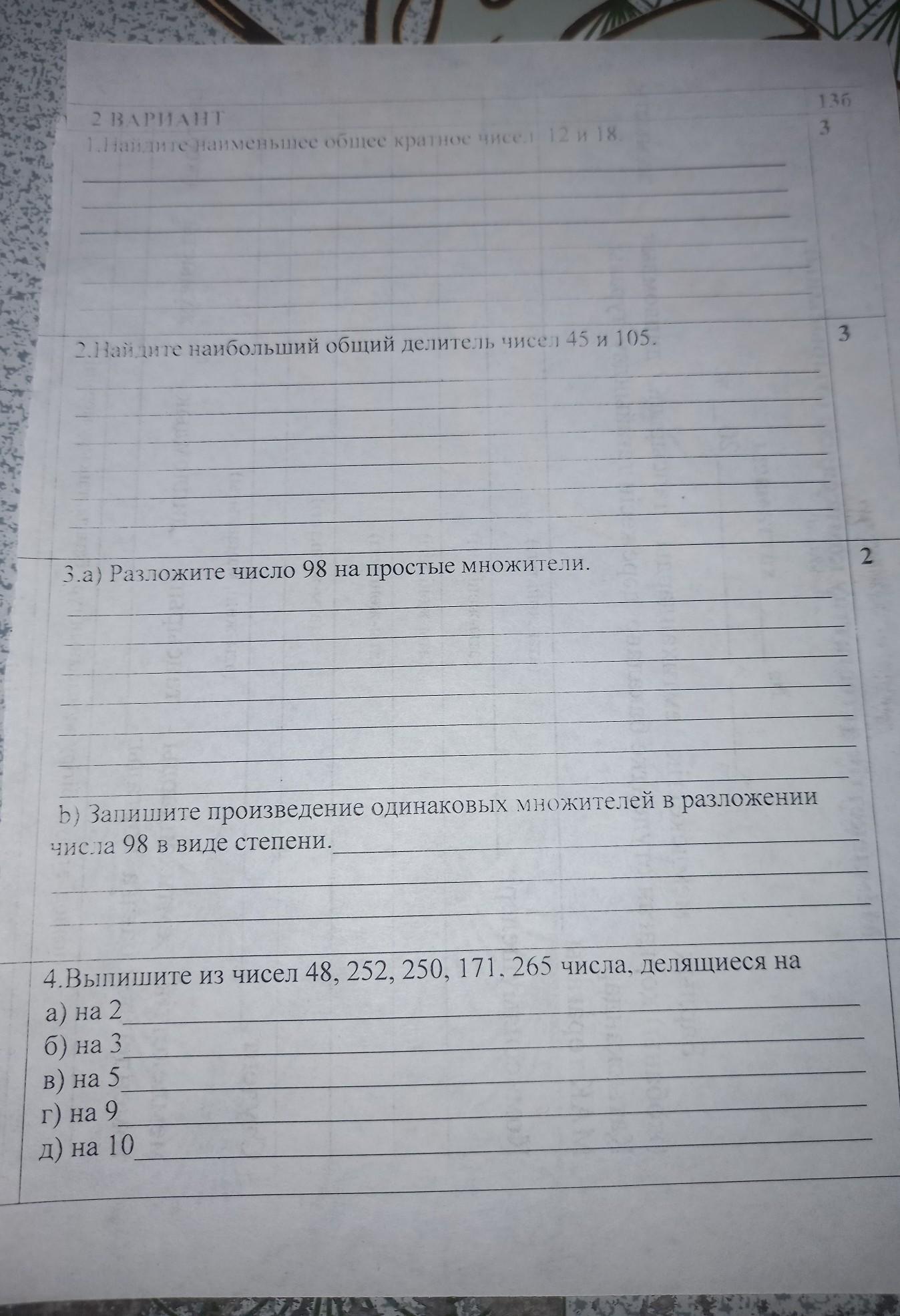 Разложите на простые множители число: а) 98, б) 76, в) 175, г) 216, д) 728, е) 240.