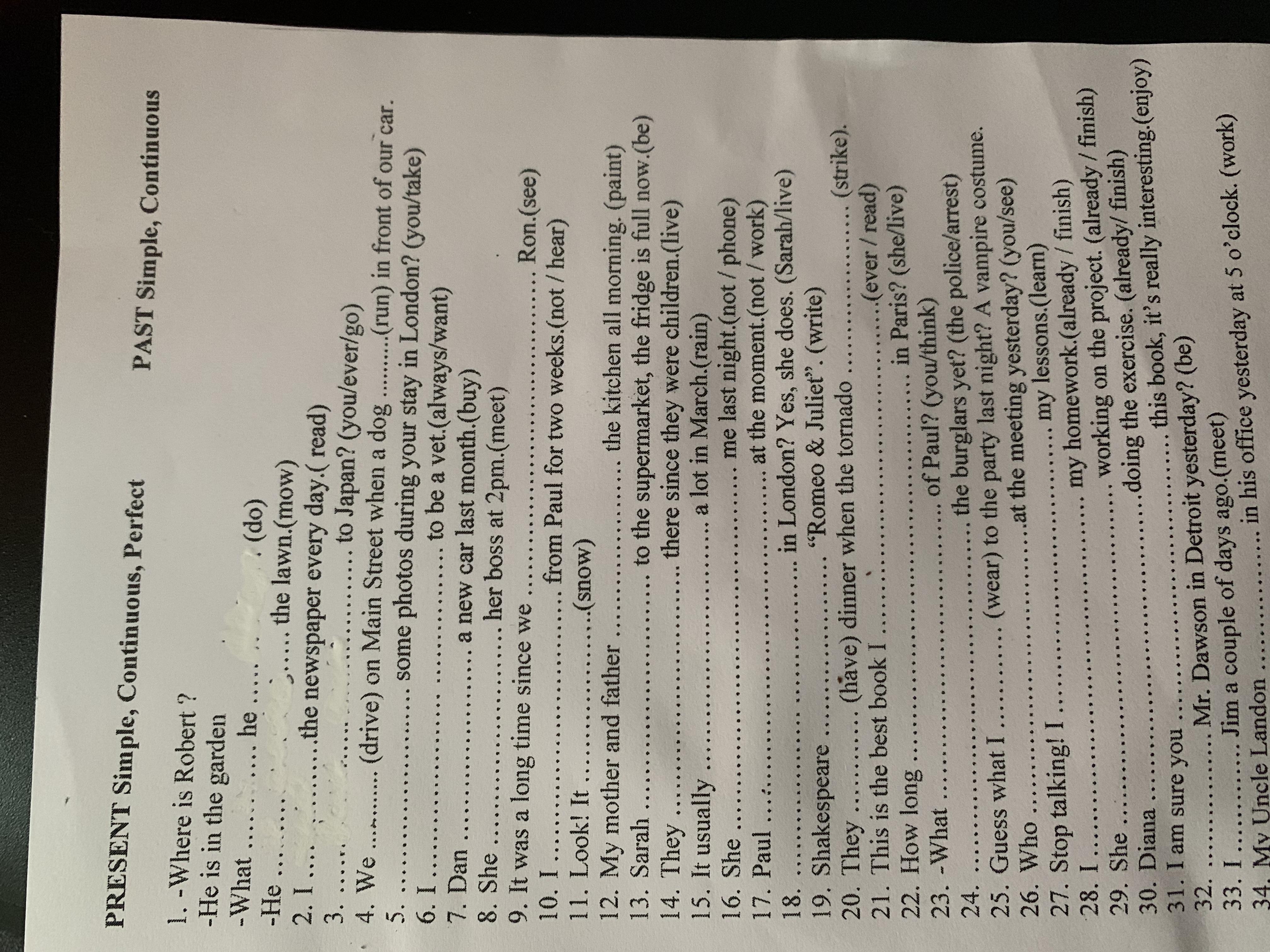 34. My Uncle Landon was working in his office yesterday at 5 o'clock.