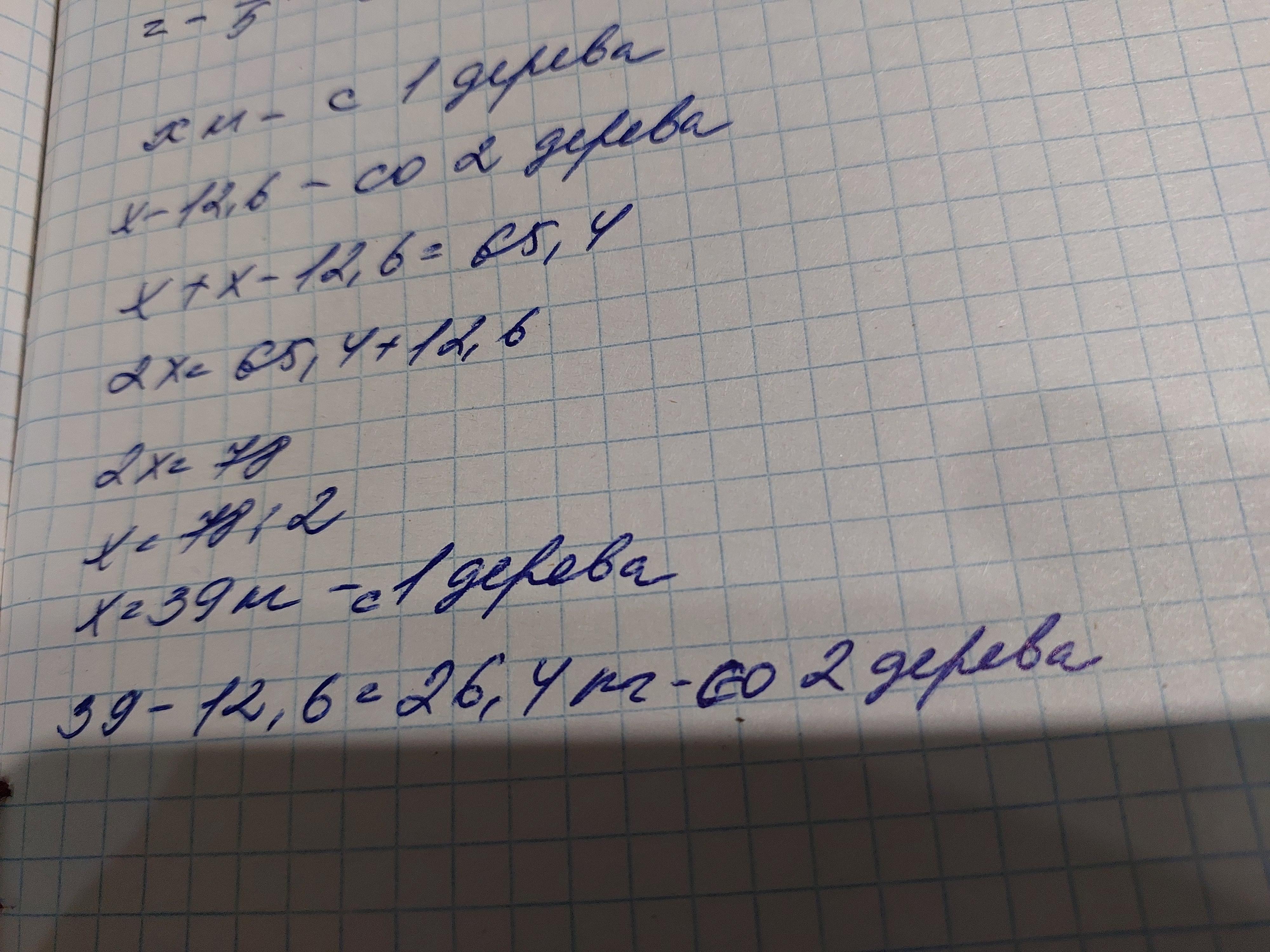 Із двох дерев зібрали 65,4 кг вишень, причому з одного дерева зібрали на 12,6 кг менше, ніж з другого.Скільки кілограмів вишень зібрали з кожного дерева?