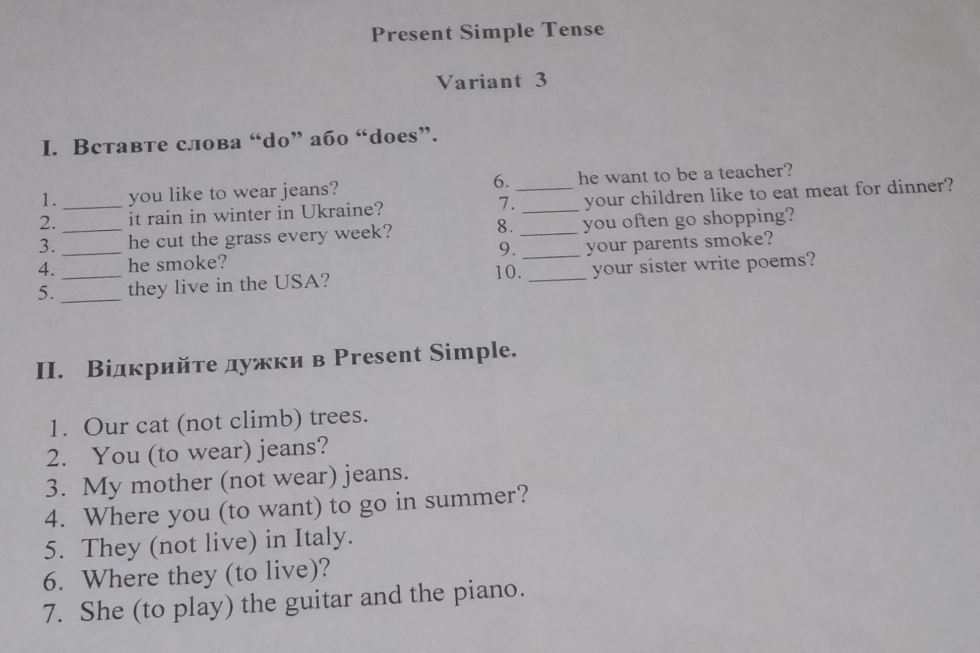 СРОЧНО нужна написать К.Р на тему: Present Simple Tense