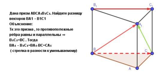 ВА₁ – В₁С₁=ВА₁-ВС=СА₁( стрелка в разности к уменьшаемому)