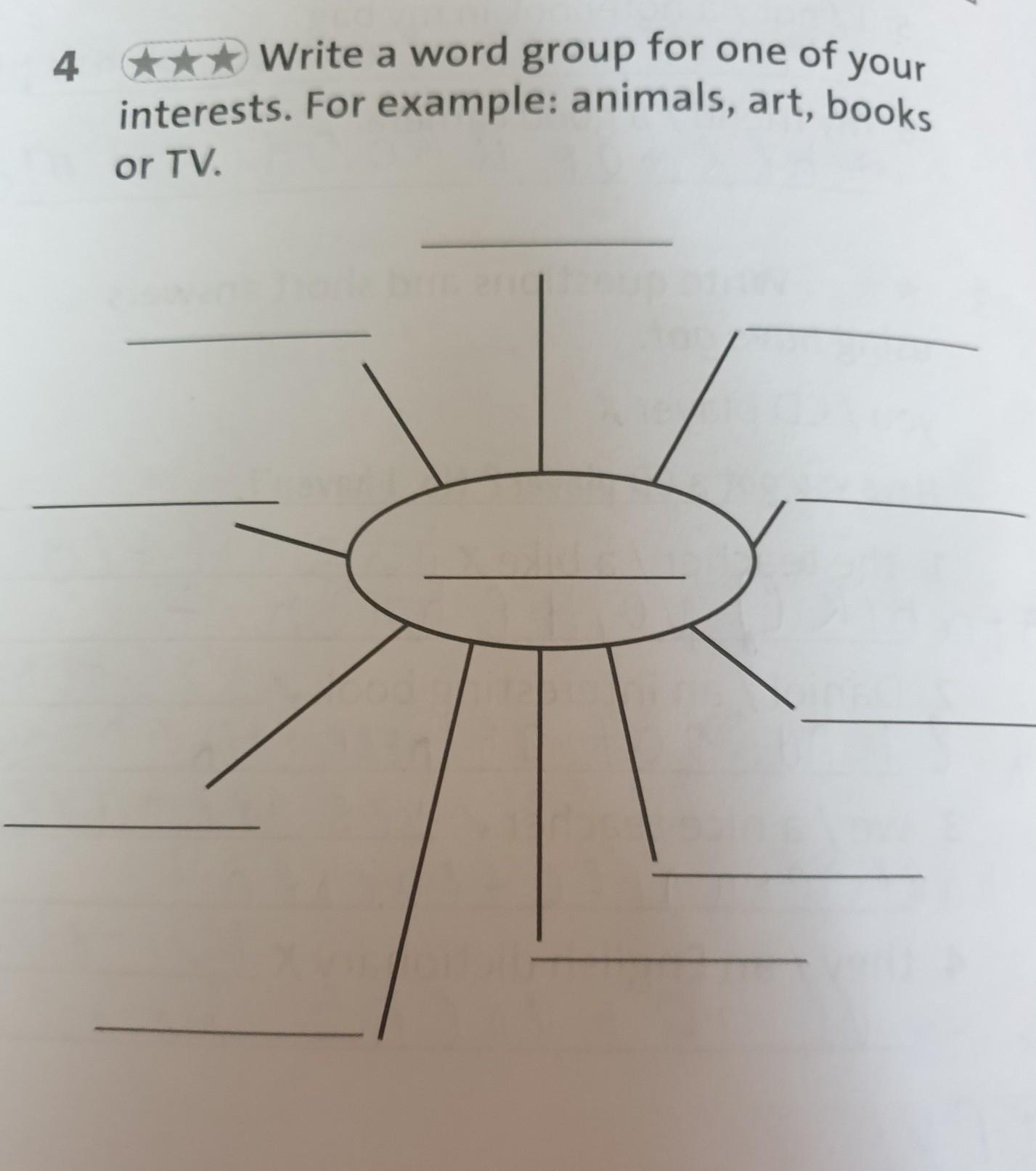 4 ✰✰✰ Write a word group for one of your interests. For example: animals, art, books or TV.