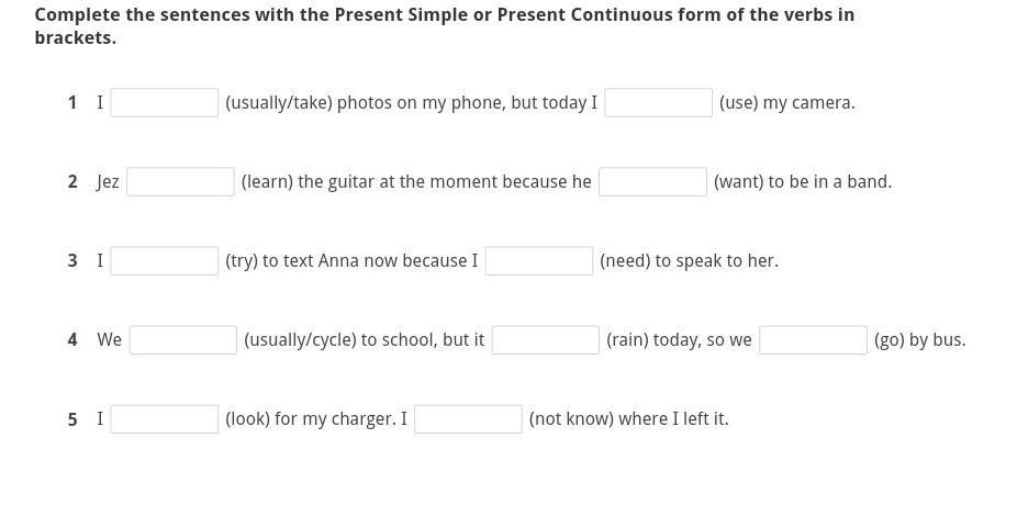 2) Jez is learning the guitar at the moment because he wants to be in a band