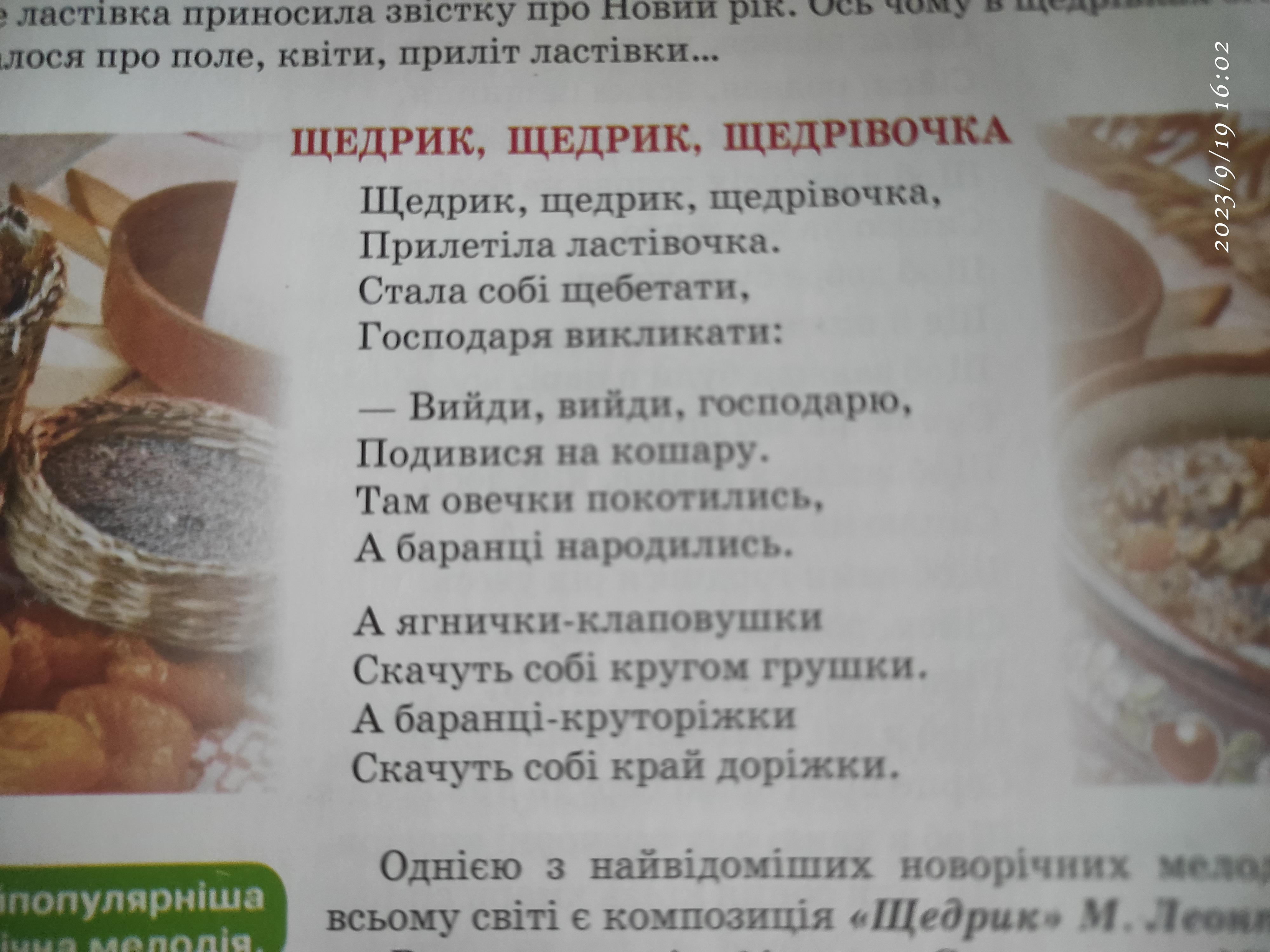 щедрівочка,ластівочка,баранціягнички-клаповушки, грушки, баранці-круторіжки,доріжки.