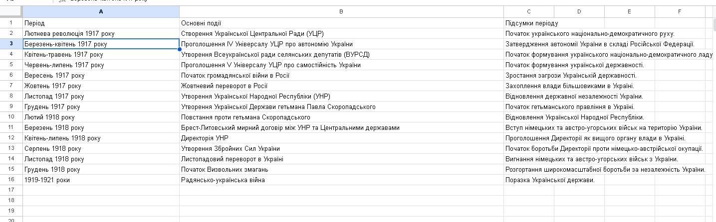 10. Розпочніть складання таблиці «Події Української революції 1917—1921 рр.». Період |основні події |Підсумки періоду