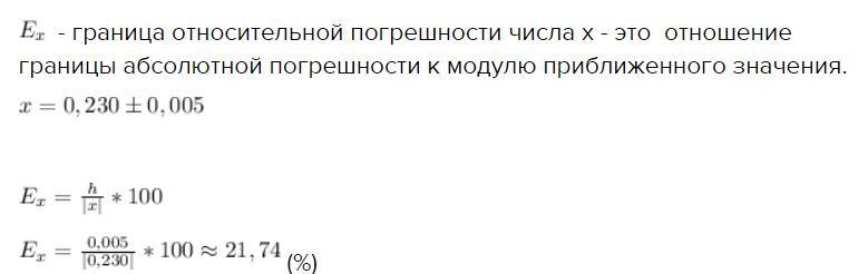 Объяснение: Найдите границу относительной погрешности (в процентах) величины x=0,230+-0,005