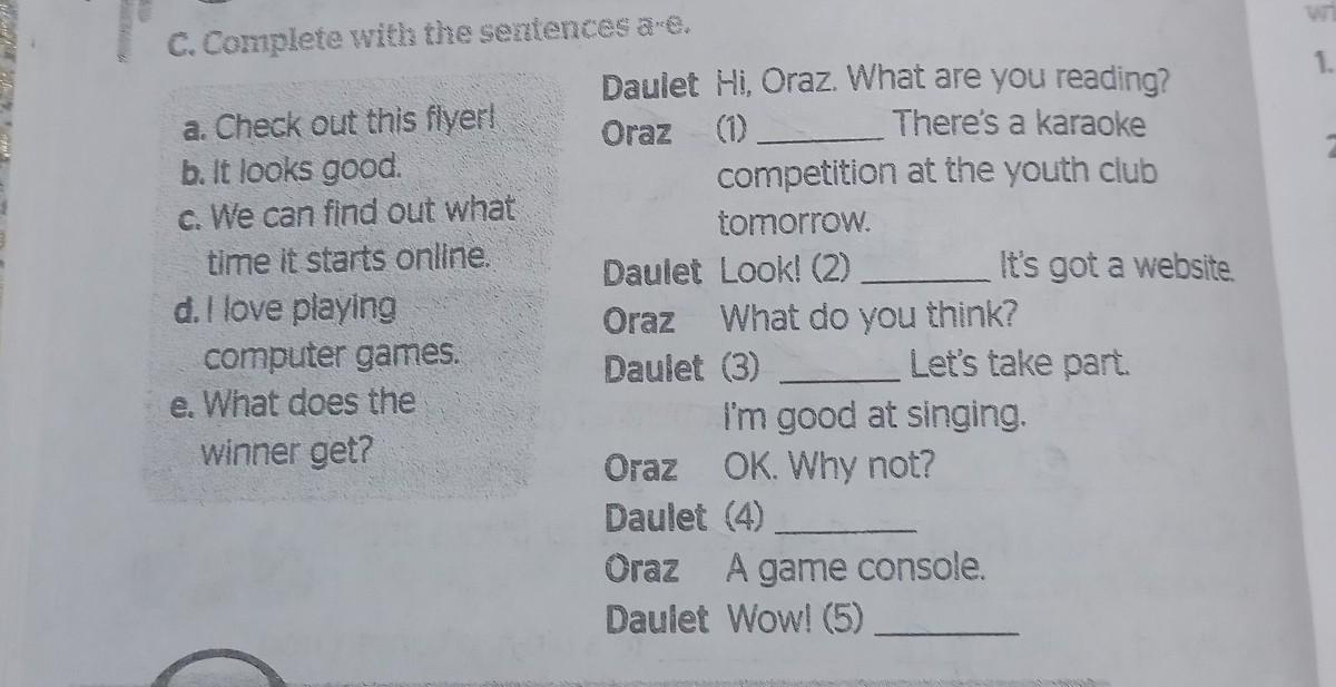 Oraz (1) Check out this flyer! There's a karaoke competition at the youth club tomorrow.