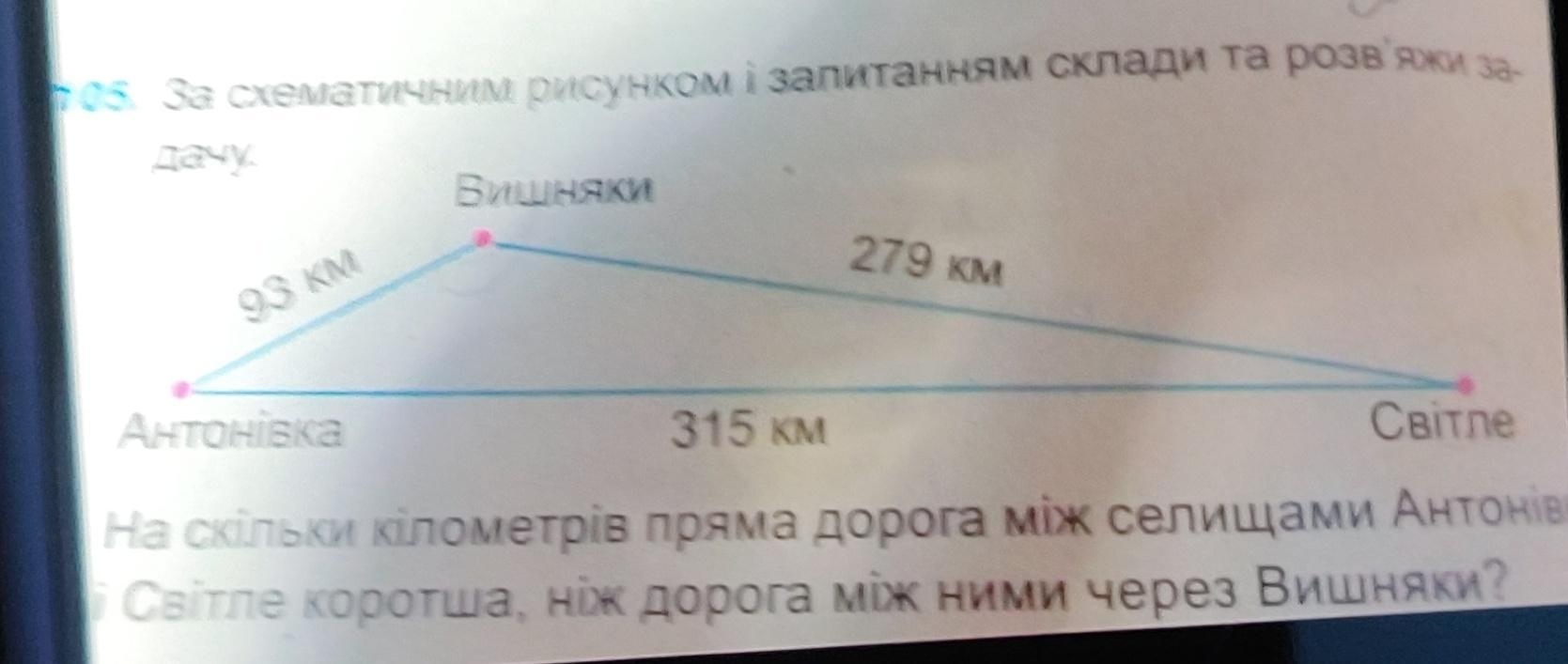 2) 372 - 315 = 57 (км) - короче прямая дорога из Антоновки до Светлого