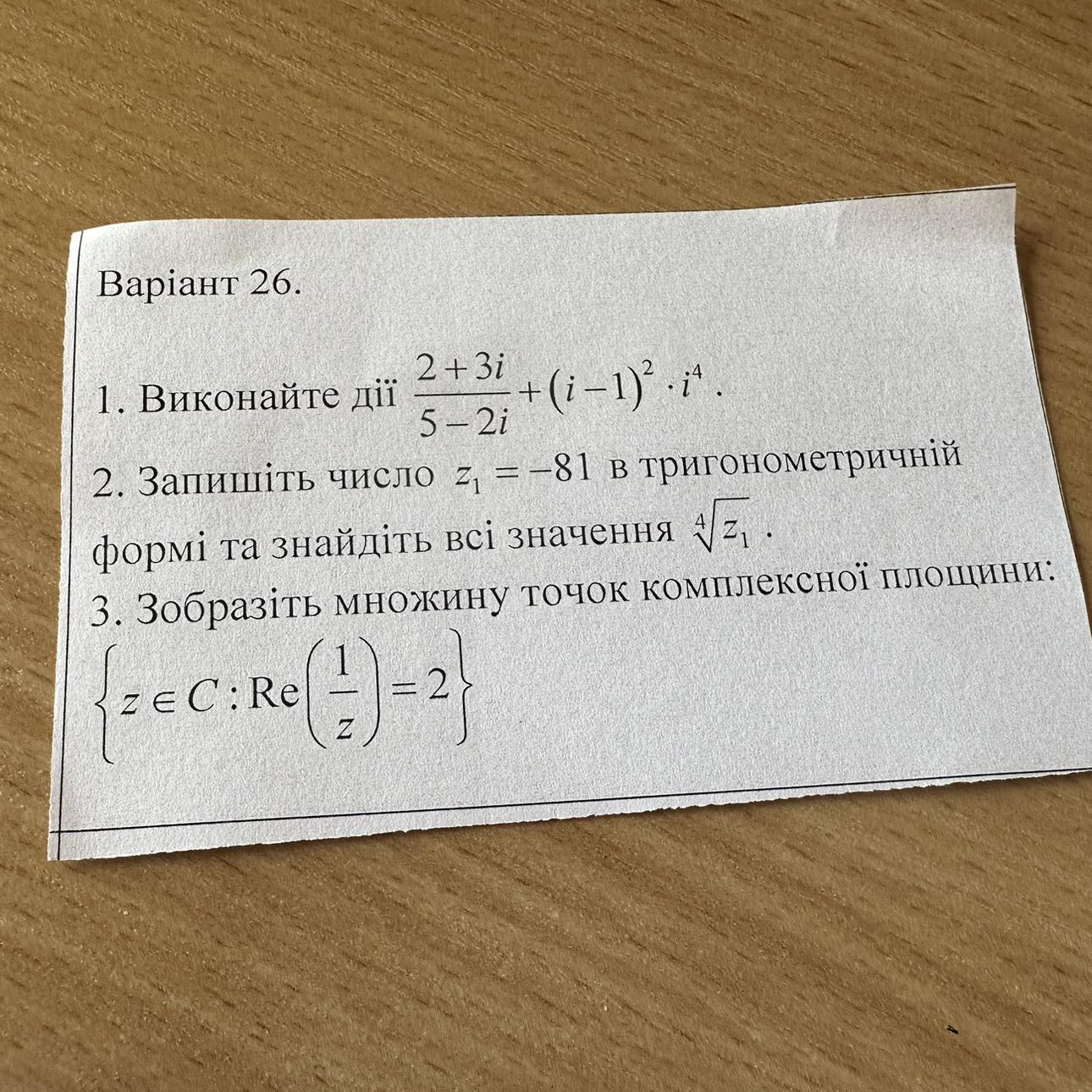 2. Запишіть число в тригонометричній формі та знайдіть всі значення: