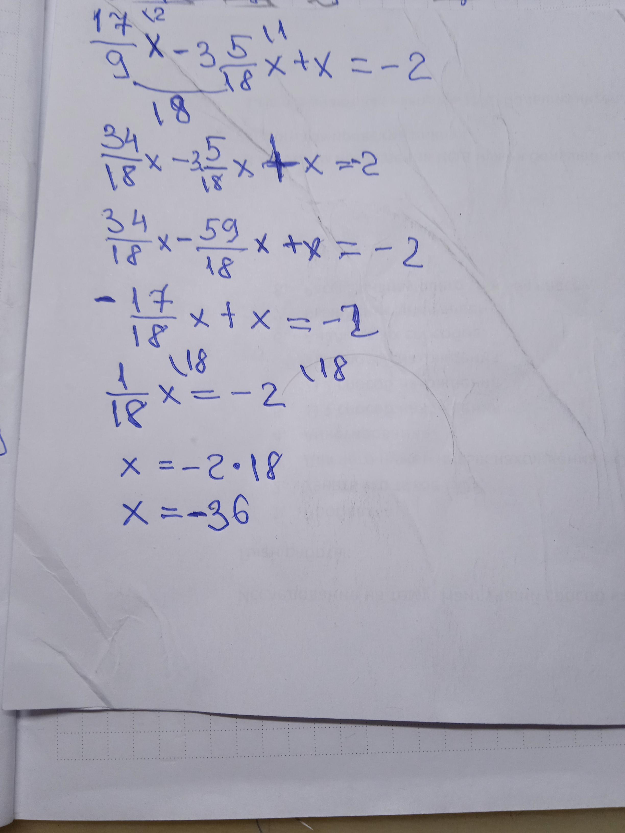 1 7/9х - 3 5/18х + х = -2