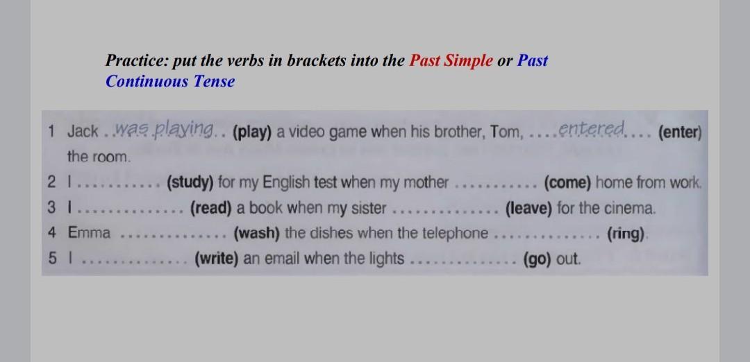 2)studyed, 3)wasnt come, 4)washing, 5)writed, 6)go to