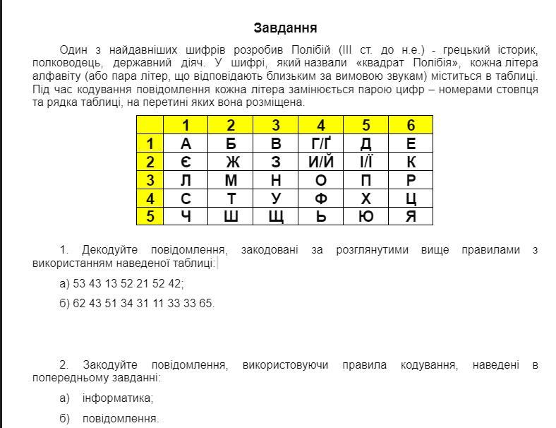 а) інформатика - 52 33 44 43 63 23 11 24 42 62 11