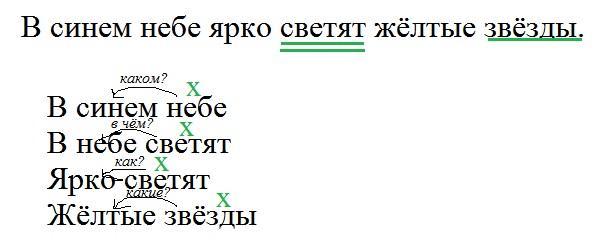 выпишите из предложения все словосочетания.Определите главное и зависимое слово (поставьте крестик над главным словом), поспешите вопросы к зависимому слову.Спишите предложение, подчеркните грамматическую основу.