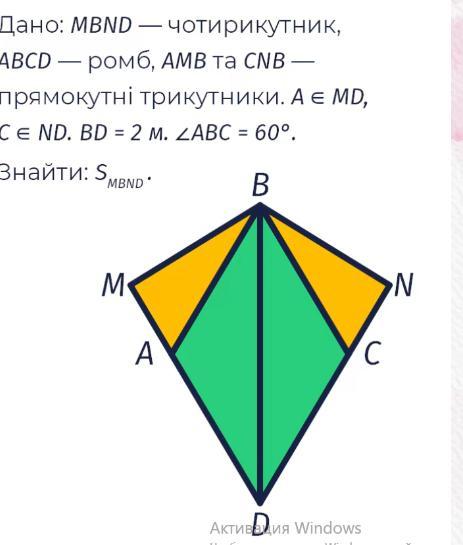 S(MBND)=2•S(BMD)=2•(√3/2)=√3 м²
