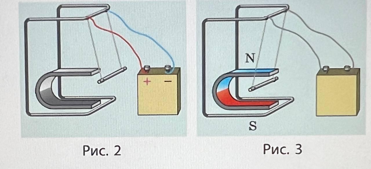Визначте: а) полюси магніту (рис. 2); б) полюси джерела струму (рис. 3).
