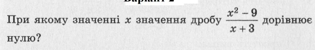 При якому значенні х значення дробу нулю? x2 - 9 / x +3 дорівнює