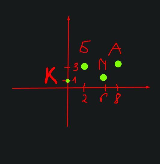 Позначте на координатній площині точки А(8,3),Б(2,3),М(6,1),К(0,1).