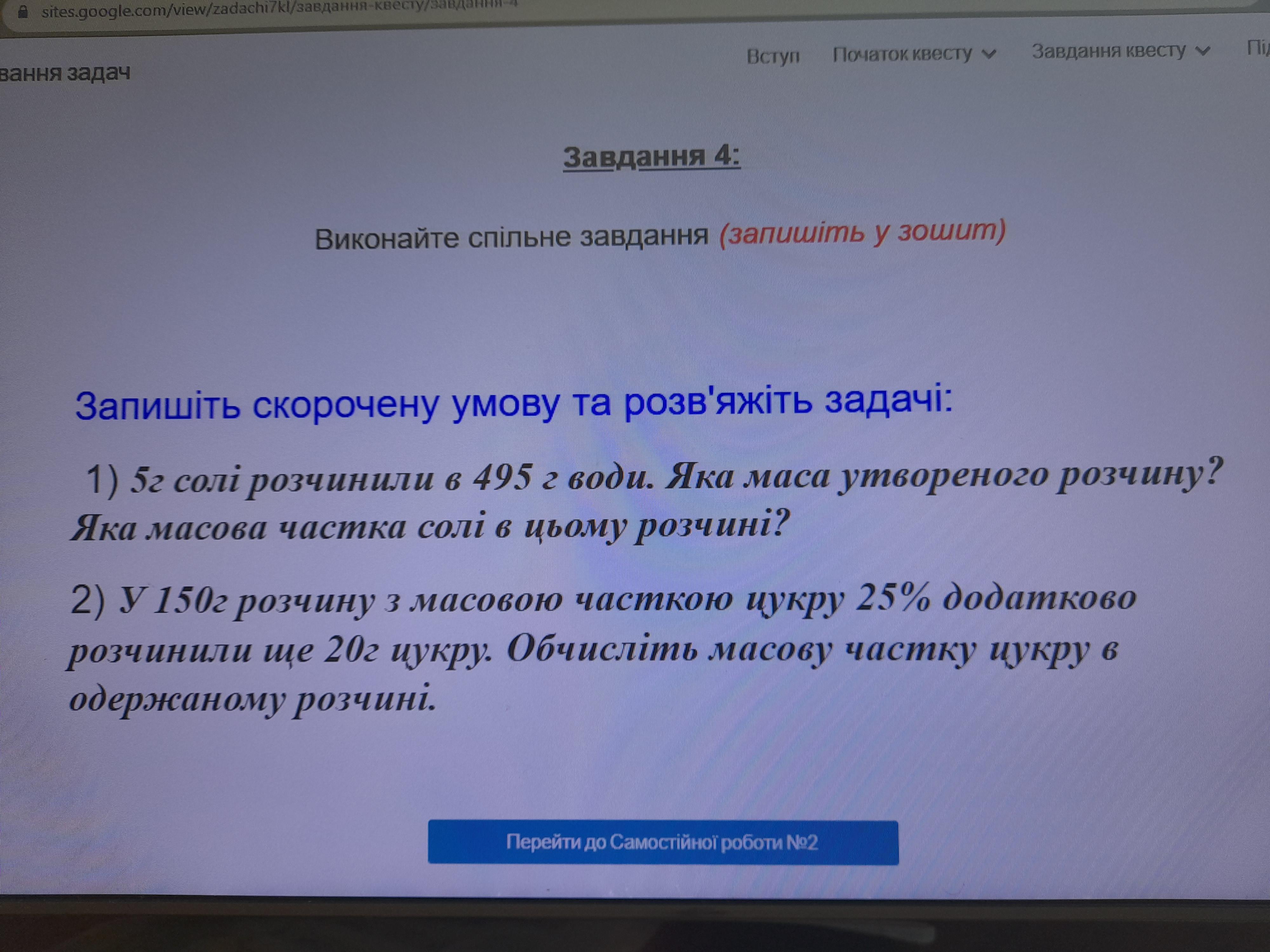 w₂ = m₃(цукру)/m₂(р-ну) * 100% = 57,5/170 * 100% = 33,82%
