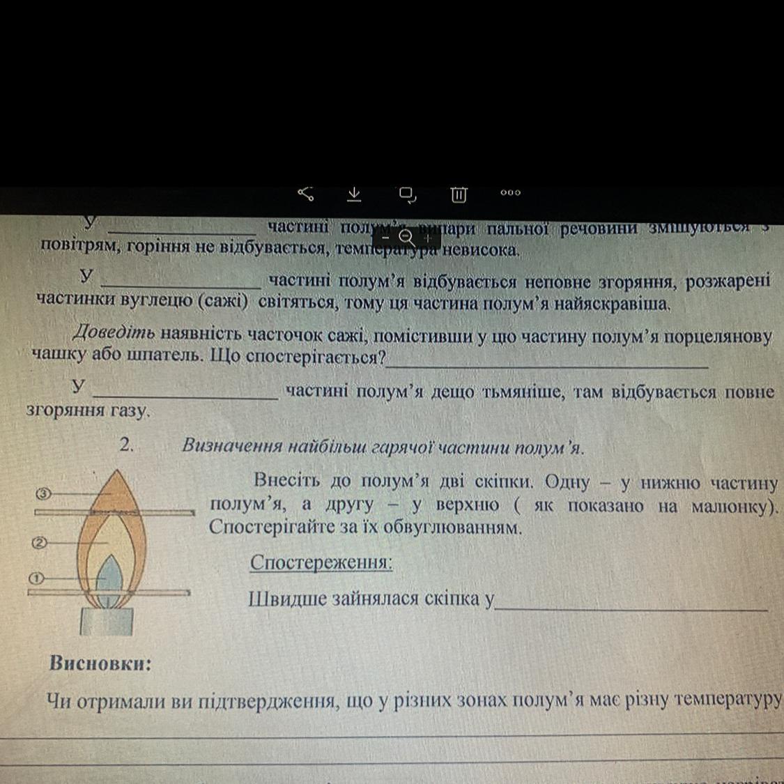 Визначення найбільш гарячої частини полум'я.