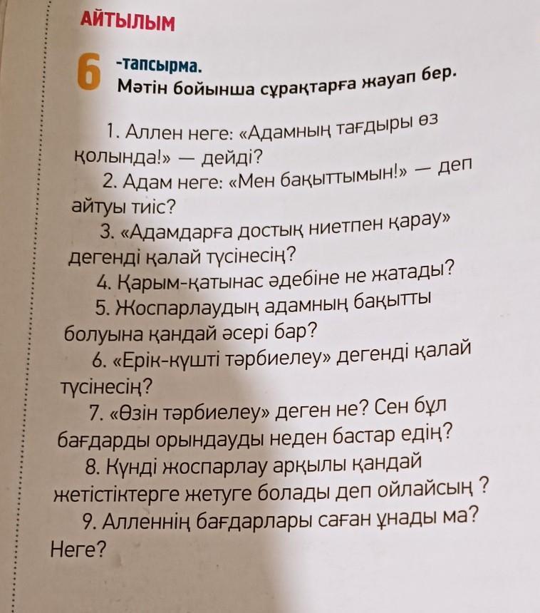ребятки помогите пж по братски, каз яз 7 класс, напишите ответы на все вопросы пжлста