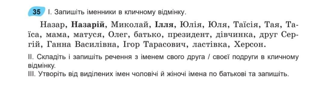 Назаре, Назарію, Миколаю, Ілл'ю (З Ілл'єю може не точно), Юліє, Юлю, Таїсіє, Тає, Таїсо, мамо, матусю, Олеже, батьку, президенте, дівчинко, друже Сергію, Ганно Василівно, Ігорю Тарасовичу, ластівко, Херсоне.