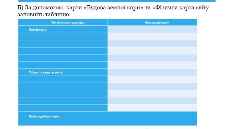 Тактанічна структура Форма рельєфу Платформи Області складчастості Попередні висновки