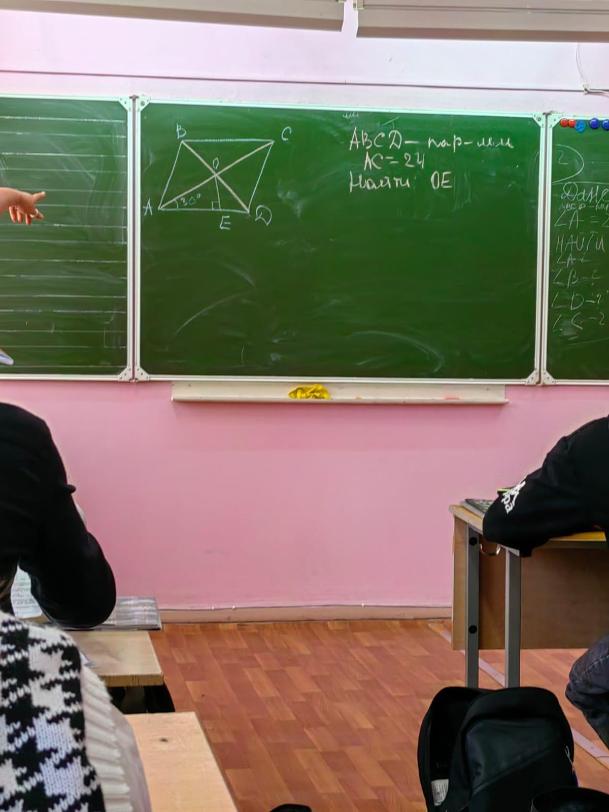 Точка пересечения диагоналей паралелограмма делит их попарно пополам, поэтому AO = AC/2 = 24/2 = 12; Сторона лежащая напротив 30 градусов в прямоугольном треугольнике равна половине гипотенузы, то есть 6. Ответ 6.