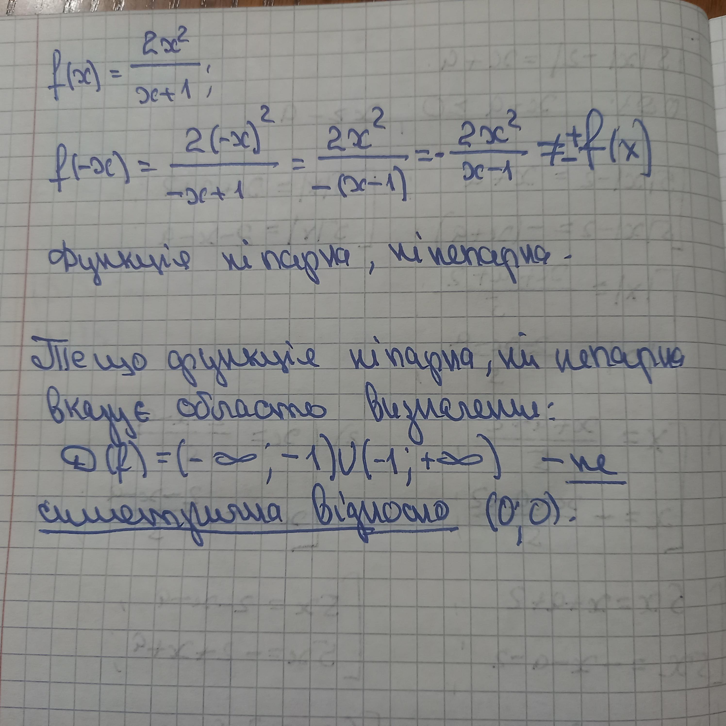 Дослідіть функцію f(x) = 2x^2/ x+1 на парність.