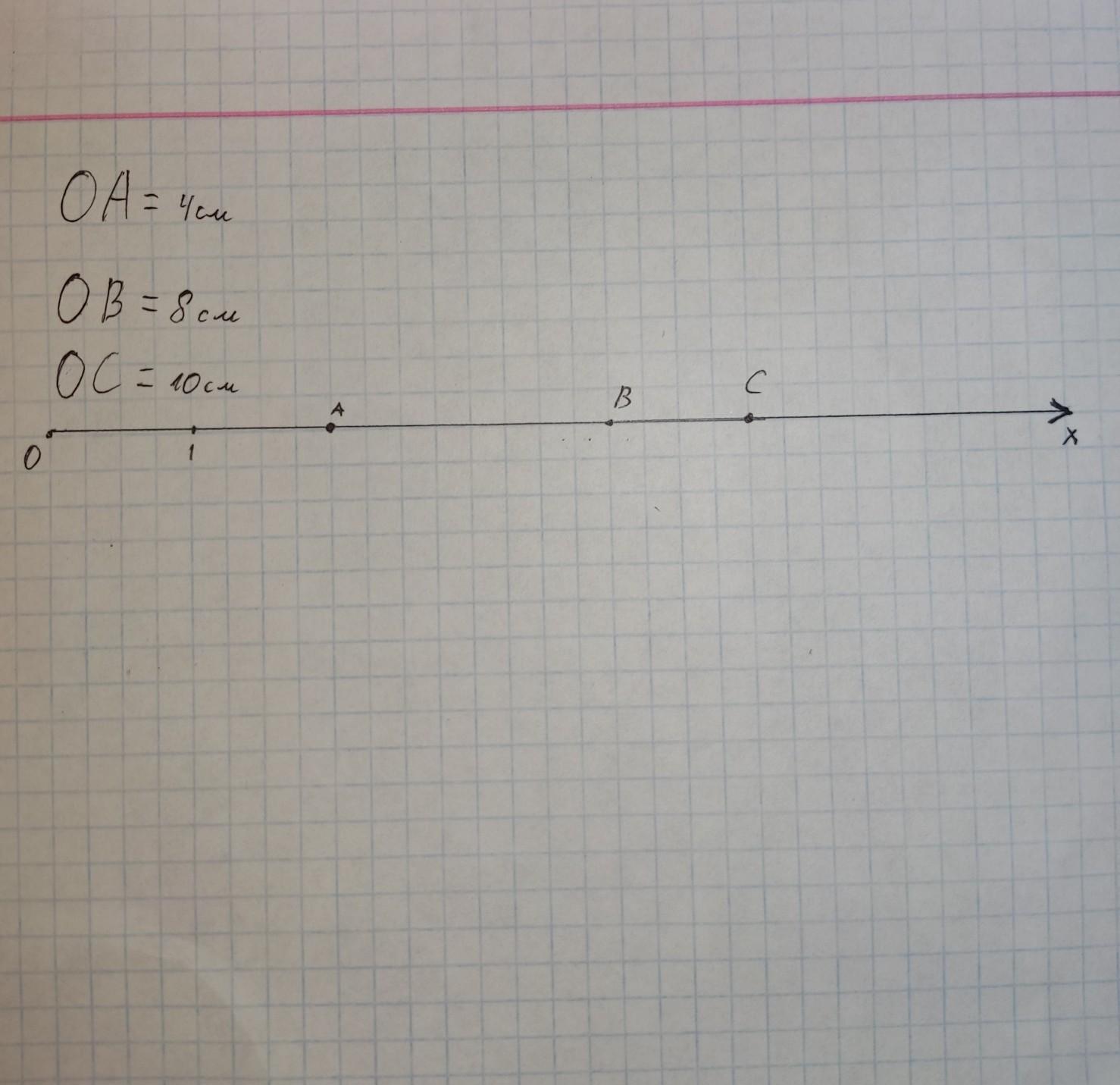 153. На координатном луче с единичным отрезком 2 см отмечены точки А(2); B(4); C(5). Найдите длины отрезков ОA, OB, OC. пж срочно
