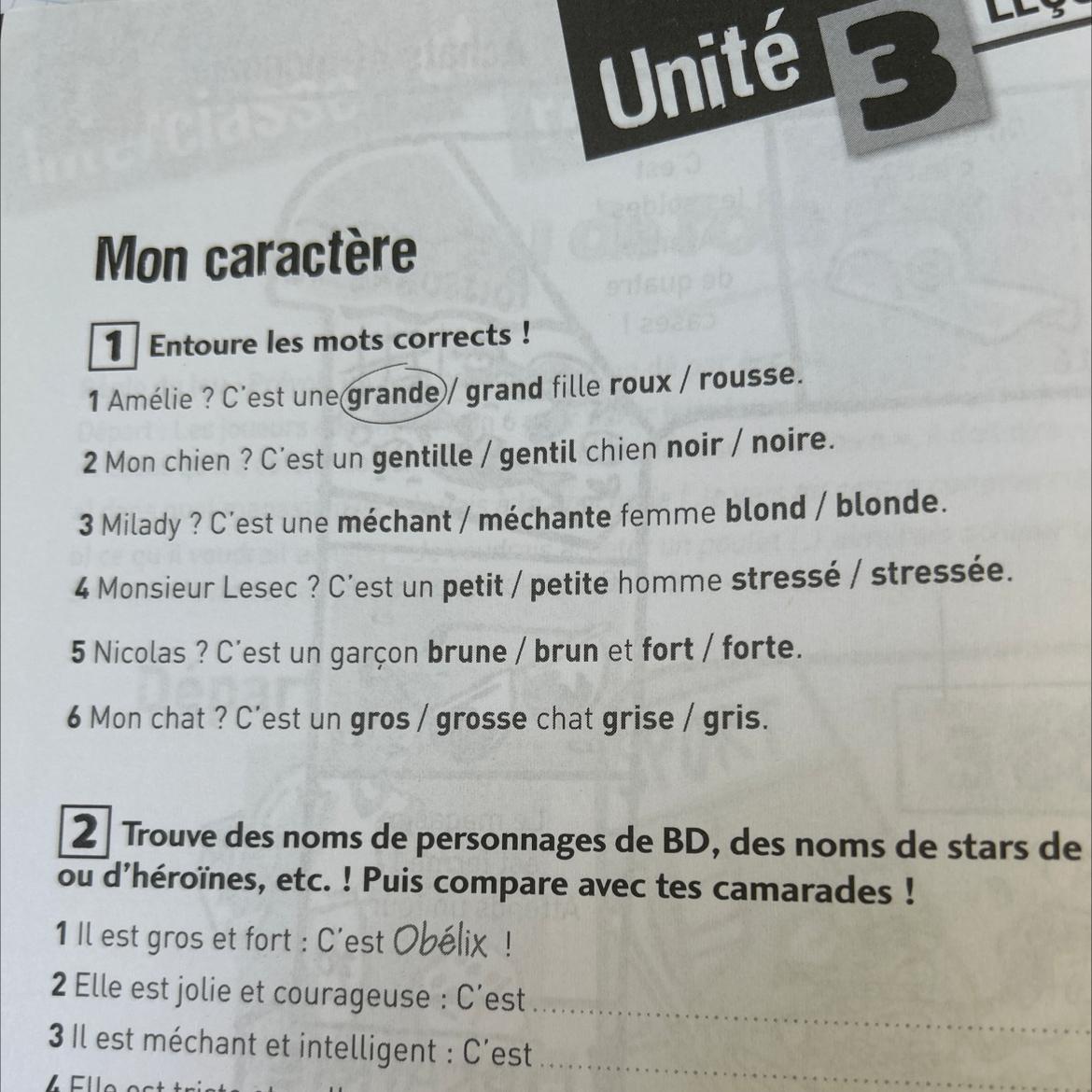 5 Nicolas ? C'est un garçon brune / brun et fort / forte.