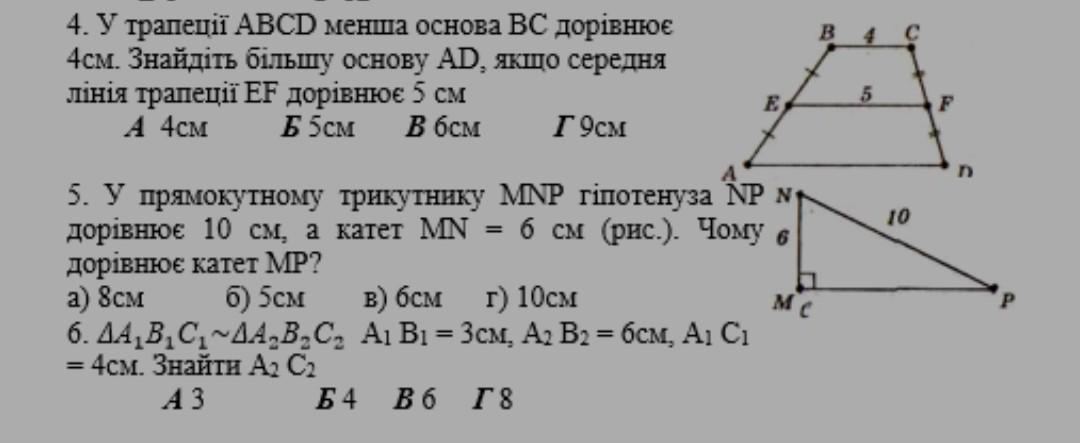 За умовою ВС=4 см, EF=5 cм, тоді: