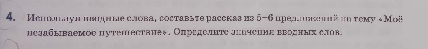 ъ весло у опро- 4. Используя вводные слова, составьте рассказ из 5-6 предложений на тему «Моё незабываемое путешествие». Определите значения вводных слов.