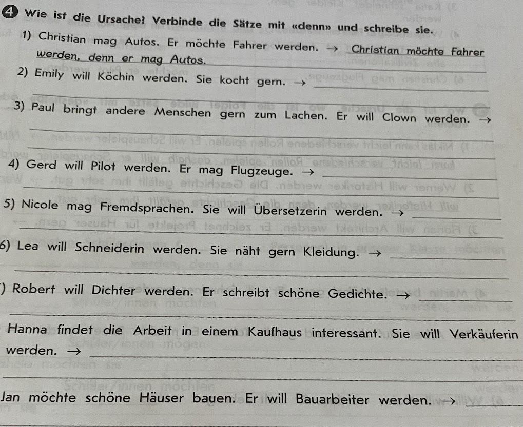 5) Nicole will Übersetzerin werden, denn sie mag Fremdsprachen.