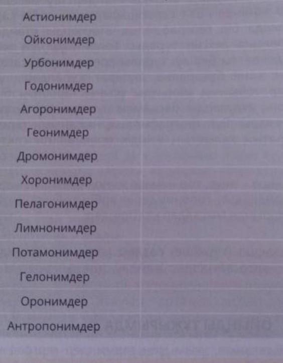 оронимдер бул кез келген нысанның тиісті атауы мысал: Шірқайың өзені, Алтай таулары