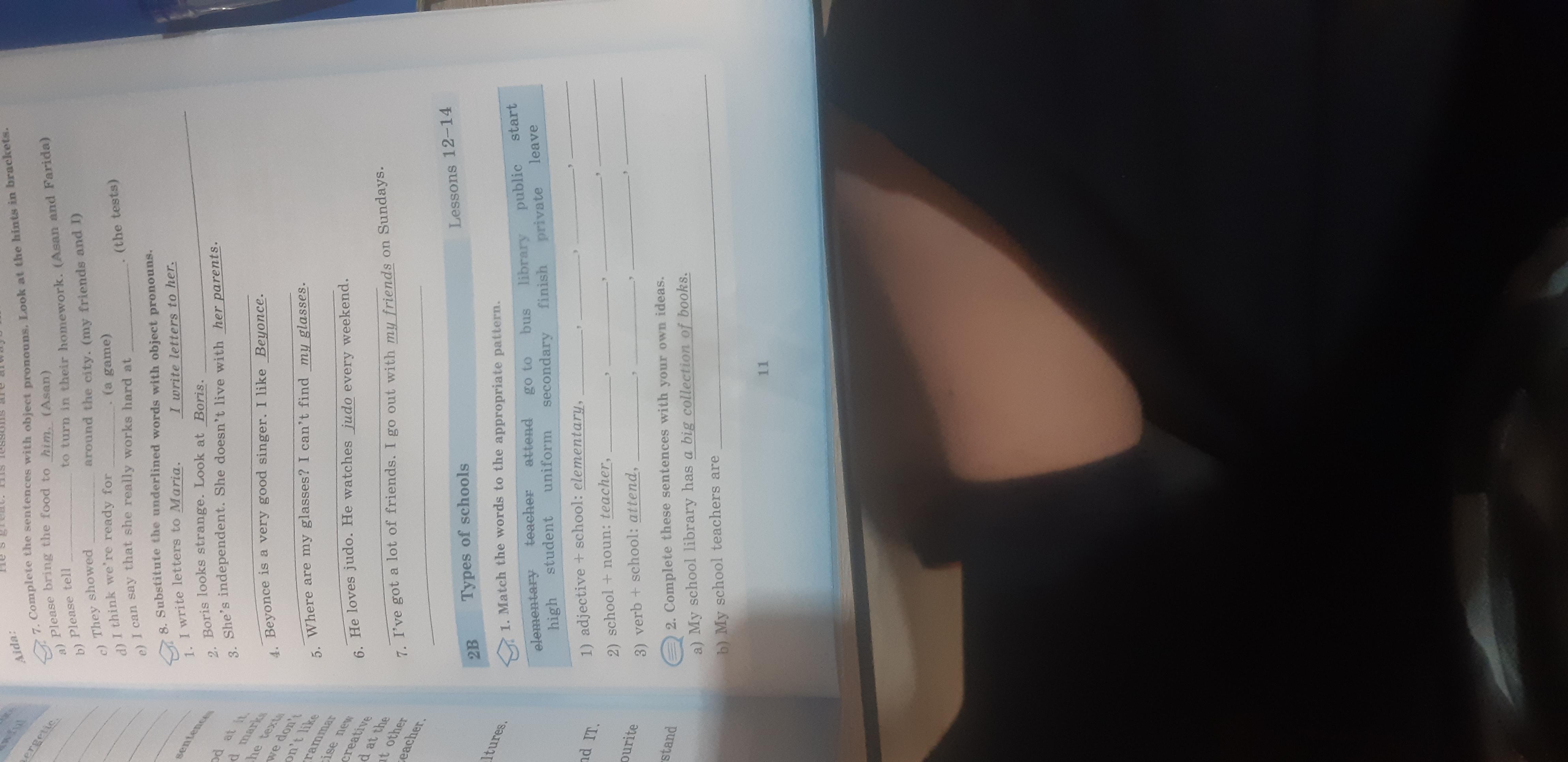 Помогите: 1. match the words to the appropriate pattern. Abjective + school: elementary