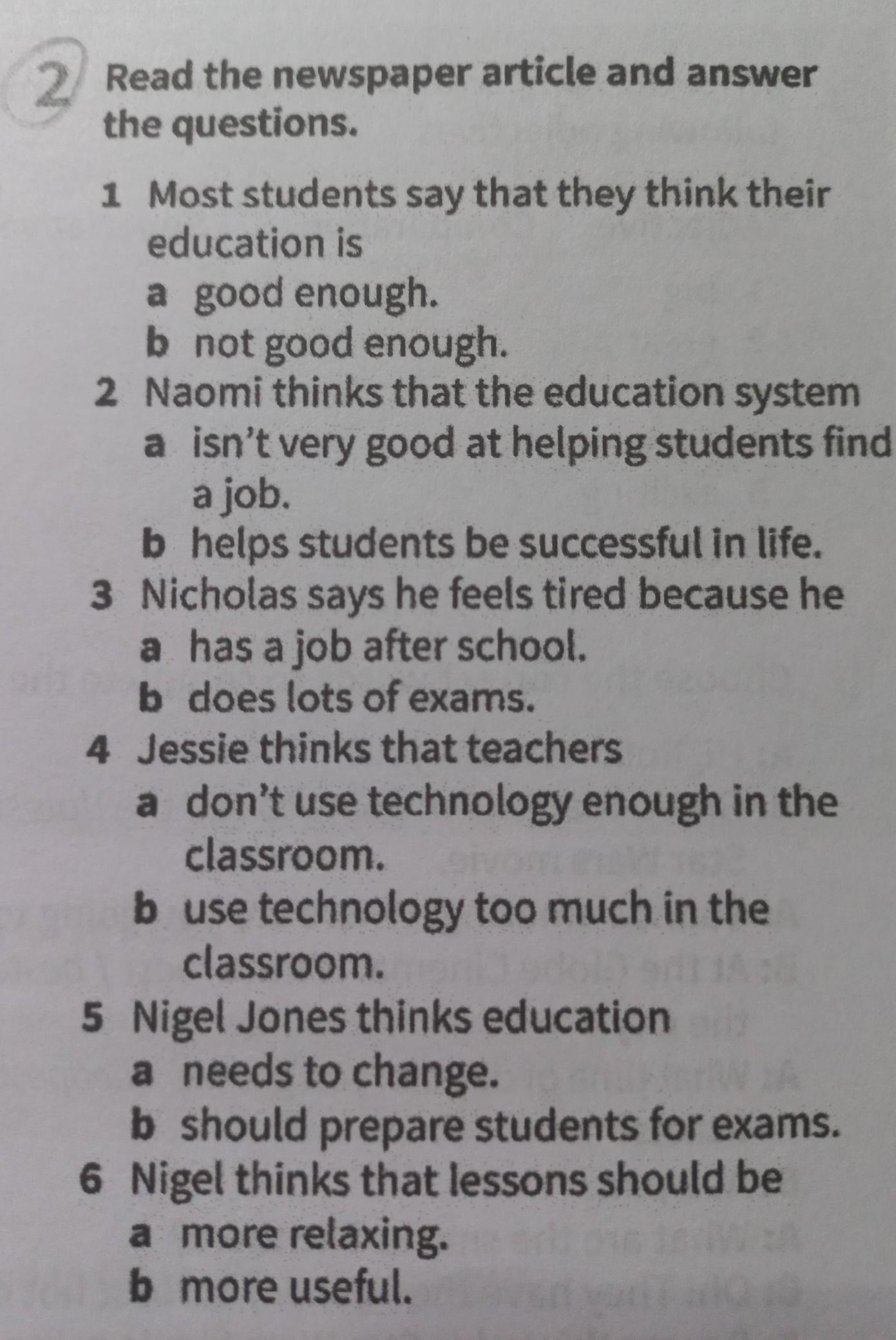 2. Naomi thinks that the education system: