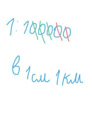 Какова длина отрезка, изображающего расстояние на местности 1 км, на карте, если масштаб карты: 1) 1:100 000; 2)1 :50 000; 3) 1:25 000?