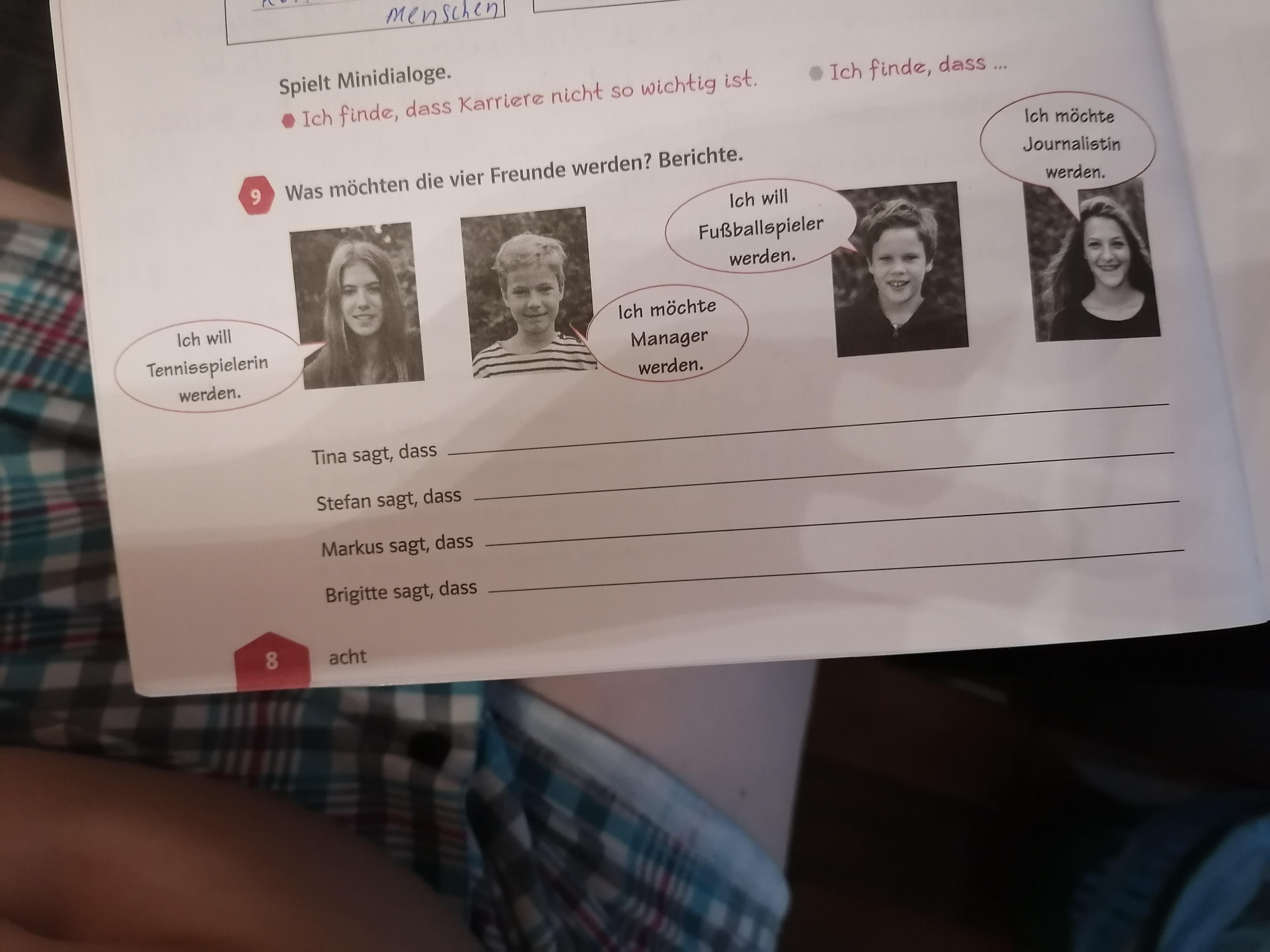 - Tina sagt, dass sie Tennisspielerin werden will.