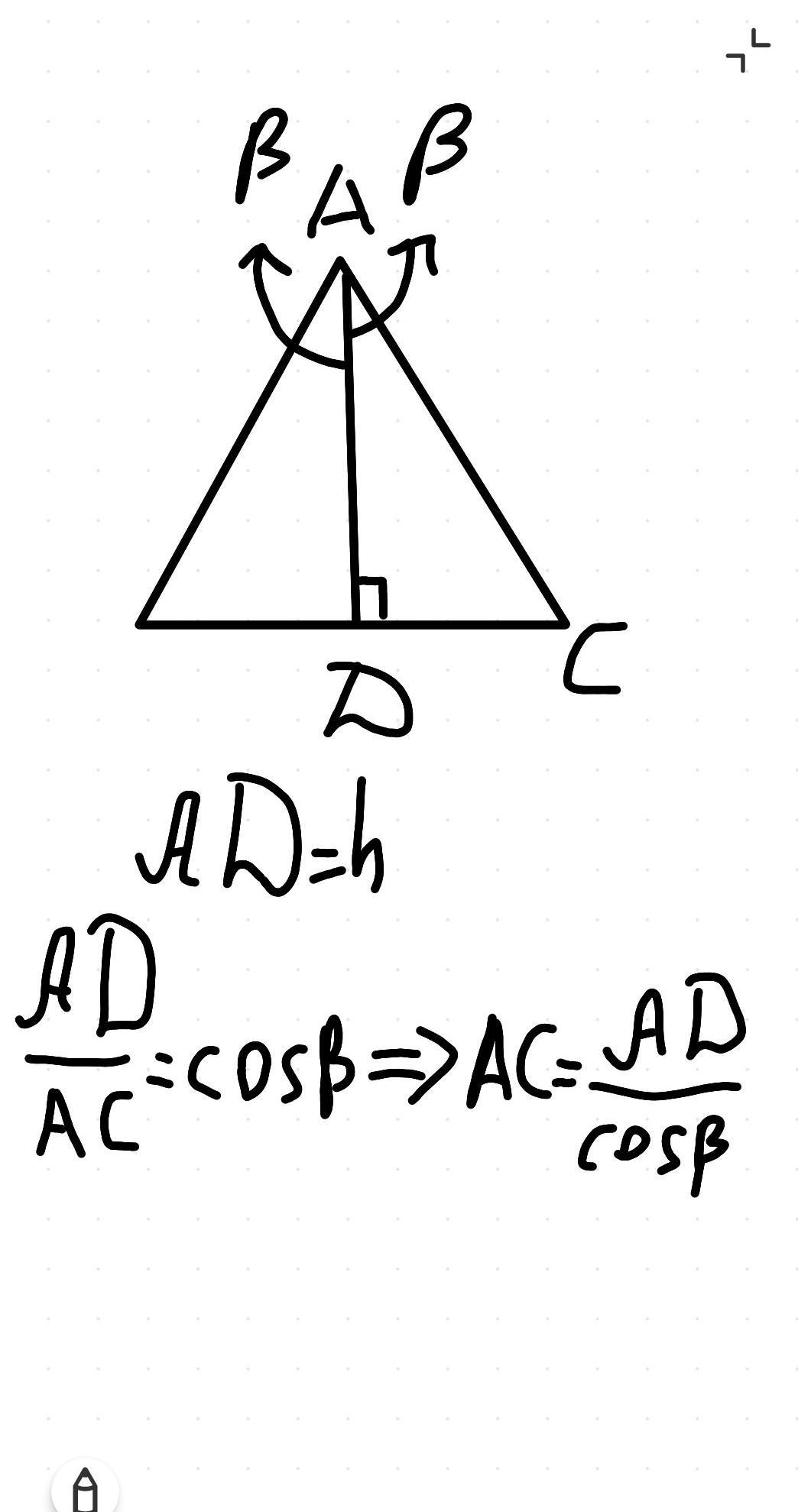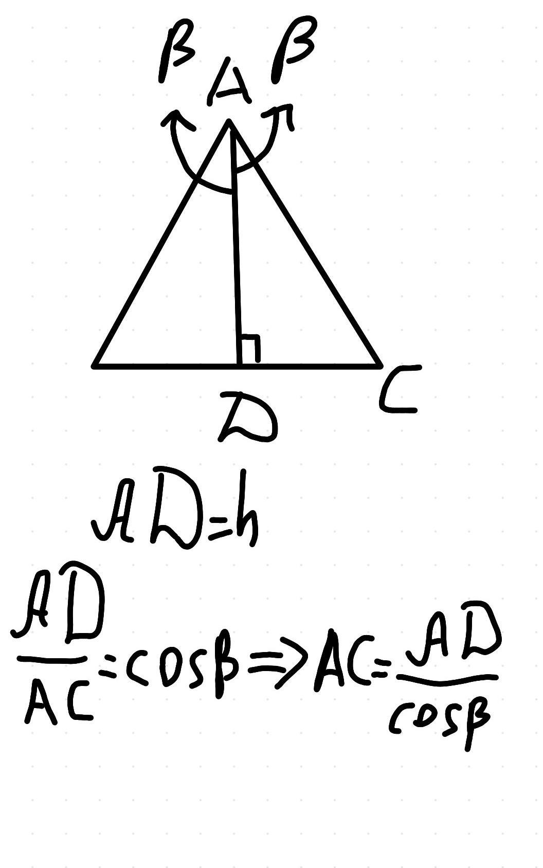 3)Кут, протилежний основі рівнобедреного трикутника, дорівнює 2β. Знайдіть бічну сторону, якщо висота, проведена до основи, становить h.